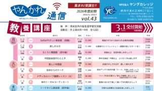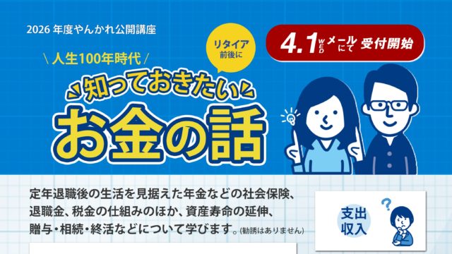 お知らせ 2026年度 前期教養講座の受付は3月1日からです!! 2026年1月10日 サイト管理者 http://yankare.com/wp-content/uploads/2019/08/logo2019-1-1.png やんかれ