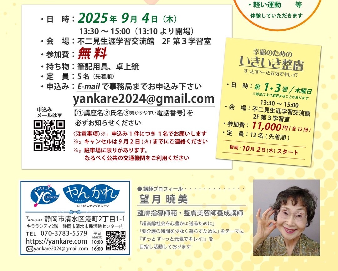 お知らせ 2024年度後期教養講座の受付は9月1日からです!! 2024年7月23日 サイト管理者 http://yankare.com/wp-content/uploads/2019/08/logo2019-1-1.png やんかれ