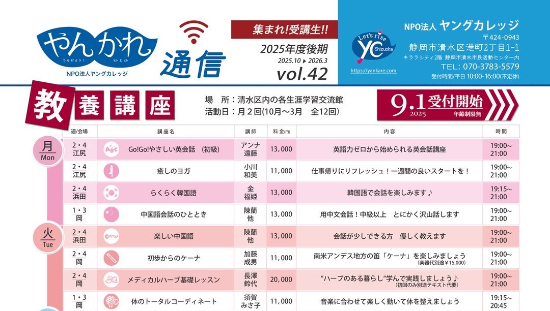お知らせ 2025年度 やんかれ先行体験講座 呼吸が深まるほぐしヨガ 2025年9月10日(水... 2025年7月20日 サイト管理者 http://yankare.com/wp-content/uploads/2019/08/logo2019-1-1.png やんかれ